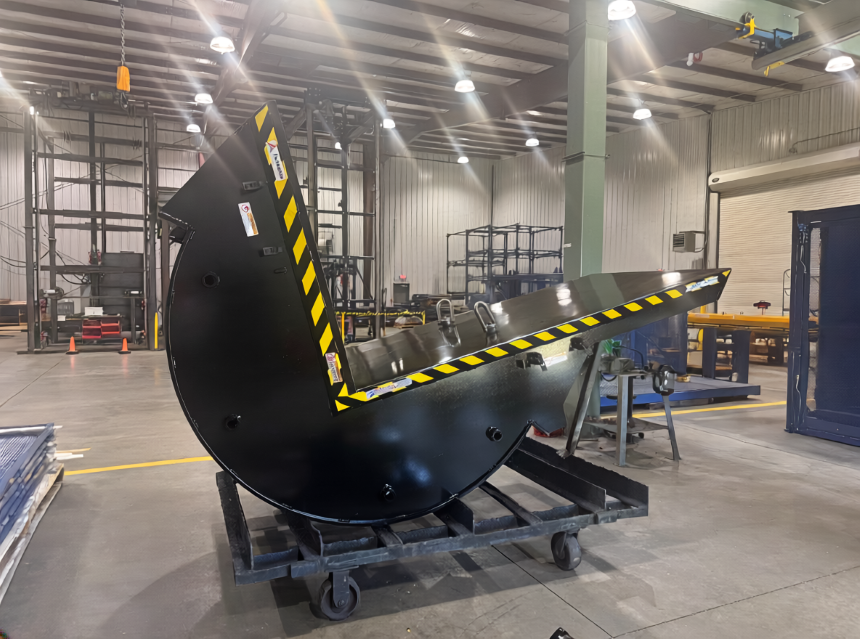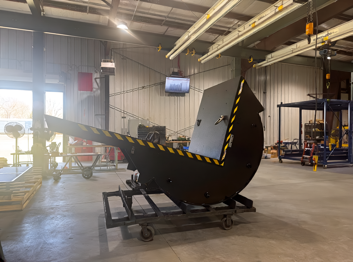 Autoquip, in partnership with dealer American Custom Lifts, delivered a custom-engineered upender (Pacman tilter) designed specifically for controlled tilt testing of server cabinets.