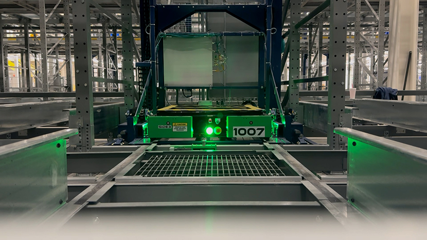 The solution involved installing shot pins on the VRCs to physically secure the AMR during vertical travel, while coordinating closely with AI Storage Solutions’ storage system design and automation requirements.